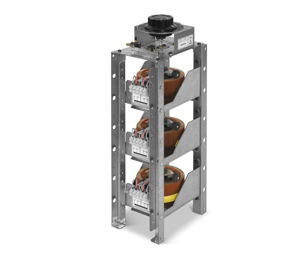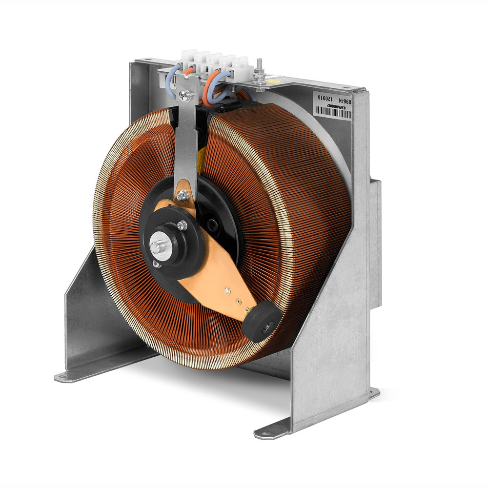 Based on ARC (Continuous Regulation Self-transformer) blocks, toroidal, they may be supplied by single phase or three- phase, and be powers, for control from distance by means of an inertia-free servomotor with double direction turning and instant braking. They may also be made in a frame surround or be portable, and have measuring instruments such as voltmeters and/or ammeters.